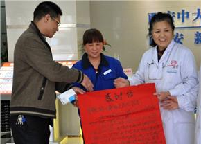 西安中大耳鼻喉医院院长桌上放着一份感谢信,其中这样写道: