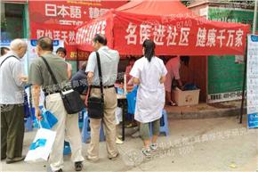 西安中大耳鼻喉医院医生早早来到了佳和苑社区的义诊现场,医生现场为居民检查耳鼻喉疾病、量血压、提供健康咨询等,并免费发放健康宣传资料、环保购物袋等,受到了社区居民的热烈欢迎。