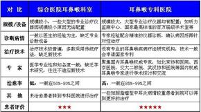 综合医院耳鼻喉科室与耳鼻喉专科医院各方面对比情况