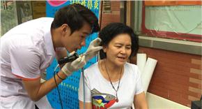 义诊活动现场:社区居民正在接受耳内窥镜检查