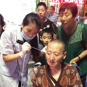 北洞岗小区张大爷正在接受耳内窥镜检查