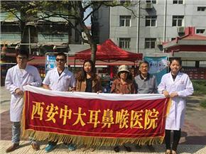 9月25日,农历八月十三,周五,艳阳天,上班族即刻将放假,家庭马上将迎来温馨团聚。西安中大耳鼻喉医院的医护人员,依然在进行着义诊活动。