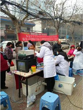 正当医护人员搬运检查器械,准备搭建义诊台的时候,周围已聚拢了很大一批前来义诊的居民,都想让医生为自己好好检查下身体。居民们的积极参与给了寒风中义诊医生们极大的动力。一切准备就绪后,医生秩序井然、耐心细致的为每一位义诊居民检查服务。附近的居民也纷纷到访,现场气氛非常热闹。