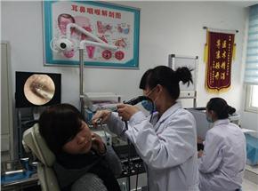 西安中大耳鼻喉医院马祥德主任正在为聋人朋友检查